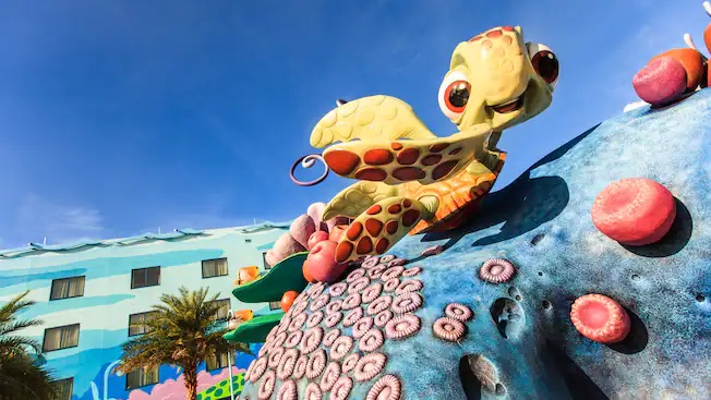 Disney’s Art of Animation Resort – This is the newest Value Resort that celebrates a few notable cinematic flicks that have graced the silver screen, with buildings and rooms themed to The Little Mermaid, Cars, Finding Nemo, and The Lion King. The hotel is across from Pop Century and shares the Skyliner route.