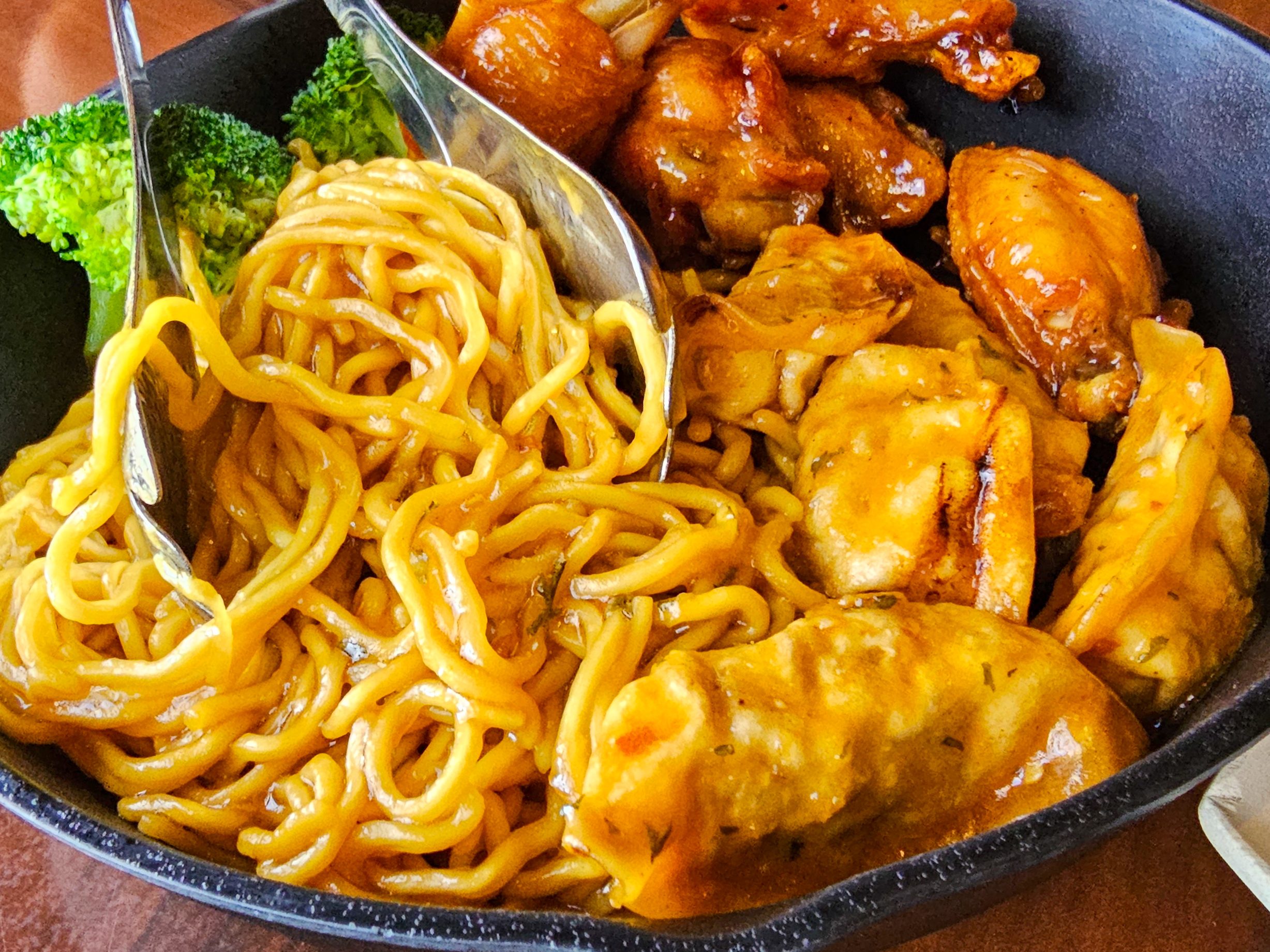 The feast kicks off with salads and their Signature ‘Ohana Bread, which is almost a dessert in itself. Then, enjoy Honey-Coriander Chicken Wings, Garlic-Chili Pork Dumplings, Teriyaki Beef, Spicy Peel-in-Eat Shrimp, Chimichurri Chicken, and the famous ‘Ohana Noodles. Finally, delight your tastebuds with the ‘Ohana Bread Pudding served a la mode with a homemade caramel sauce.