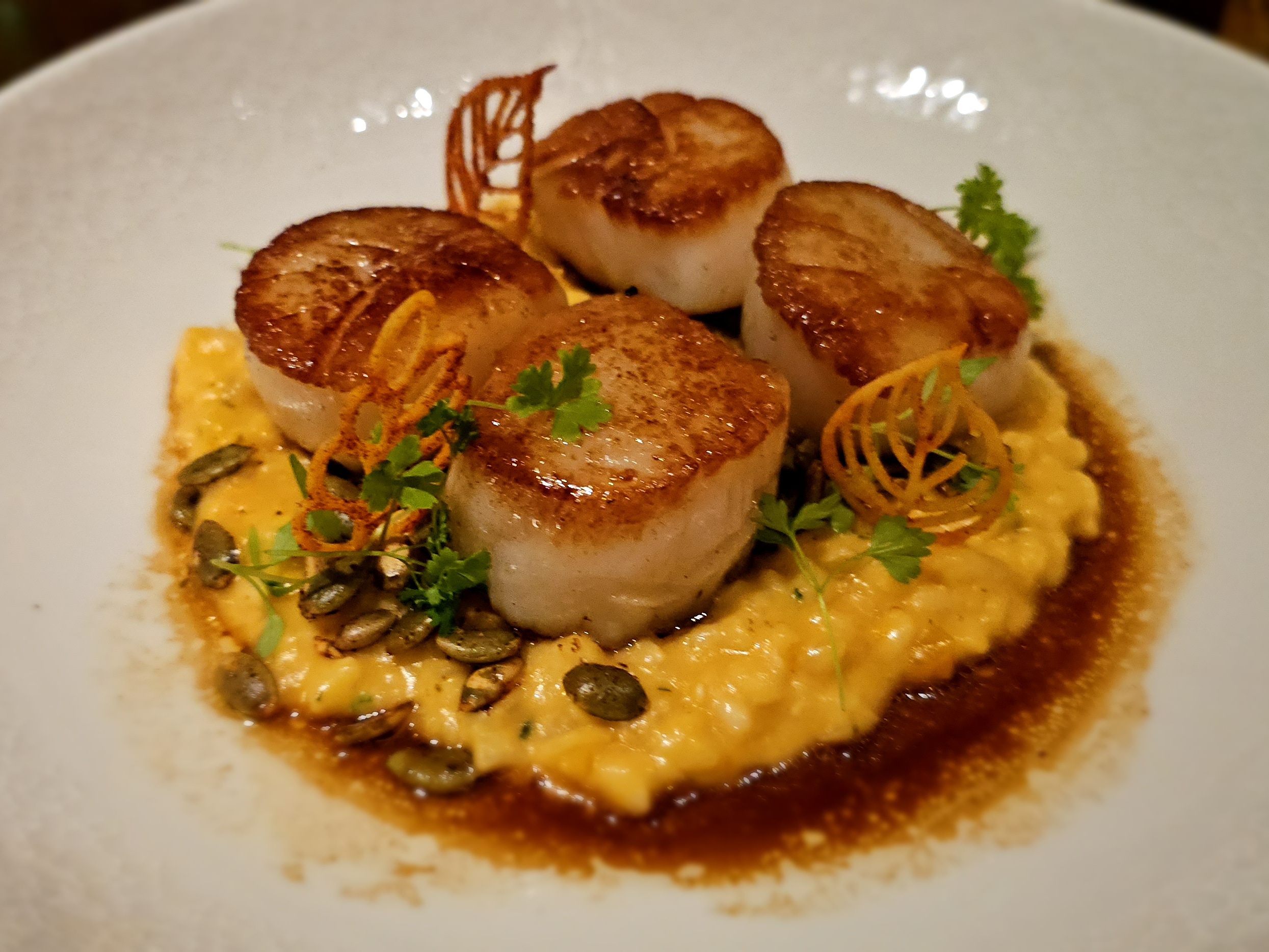 The menu showcases an array of culinary delights, from house-made ricotta and melt-in-your-mouth scallops. We highly recommend having the bread service paired with the ricotta appetizer, served with aged balsamic, cracked pepper, and fresh basil. Then, enjoy the Sea Scallops entree with a winter squash risotto or a Braised Lamb Shank served atop polenta. Finish with a Vanilla and Citrus Creme Brulee for an indulgent evening.