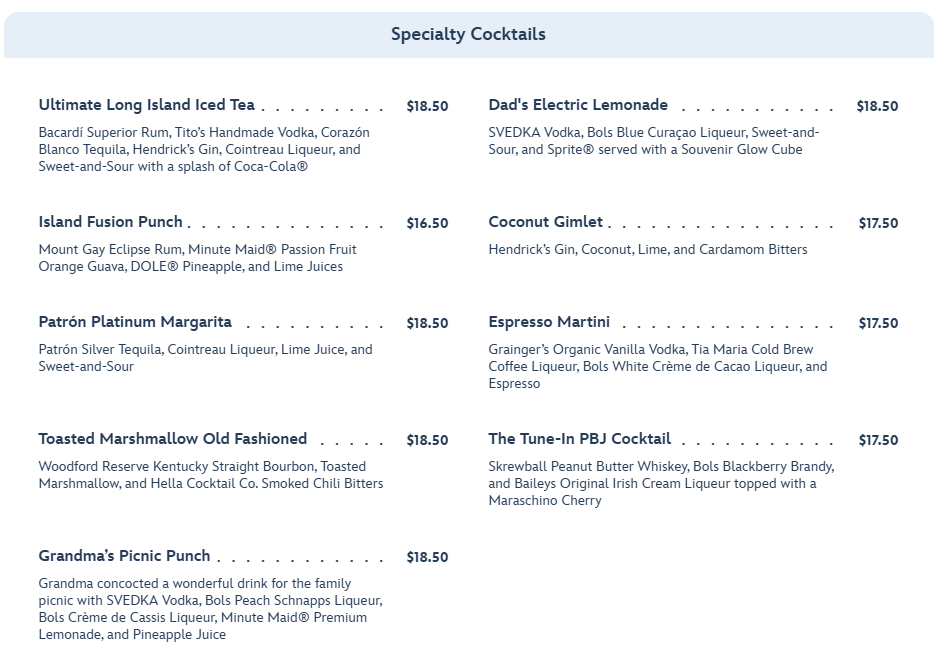 The drink choices were a wide range, but they keep it pretty well on-theme. With drinks like “Dad’s Electric Lemonade” and “Grandma’s Picnic Punch,” there is something on the menu for everyone.